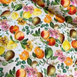 O Tricoline Digital Frutas é um tecido puro algodão, muito utilizado para artesanatos como, necessaire, patwork, lençol, fronha, roupas infantis, barras de manta de bebê, bolsas, panos de prato e muito mais.